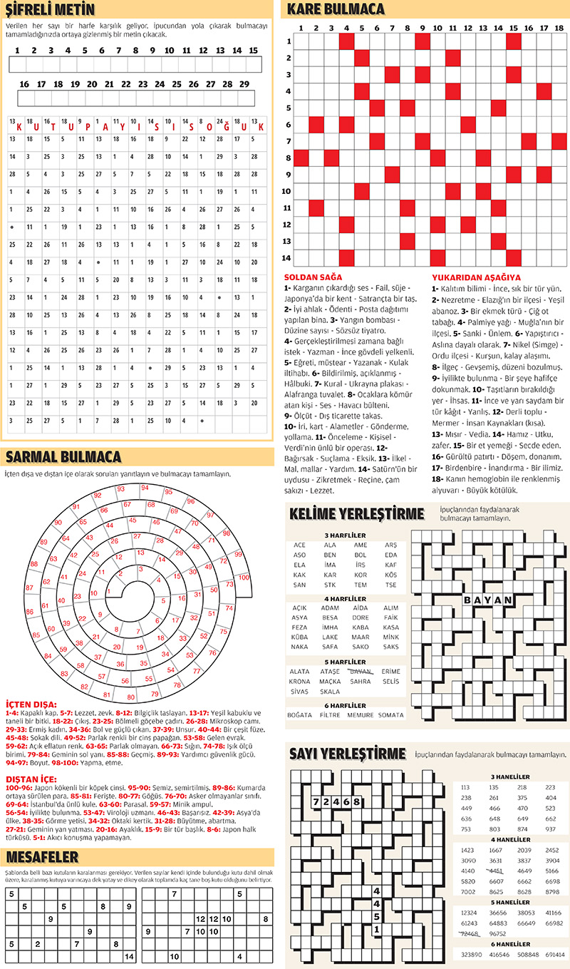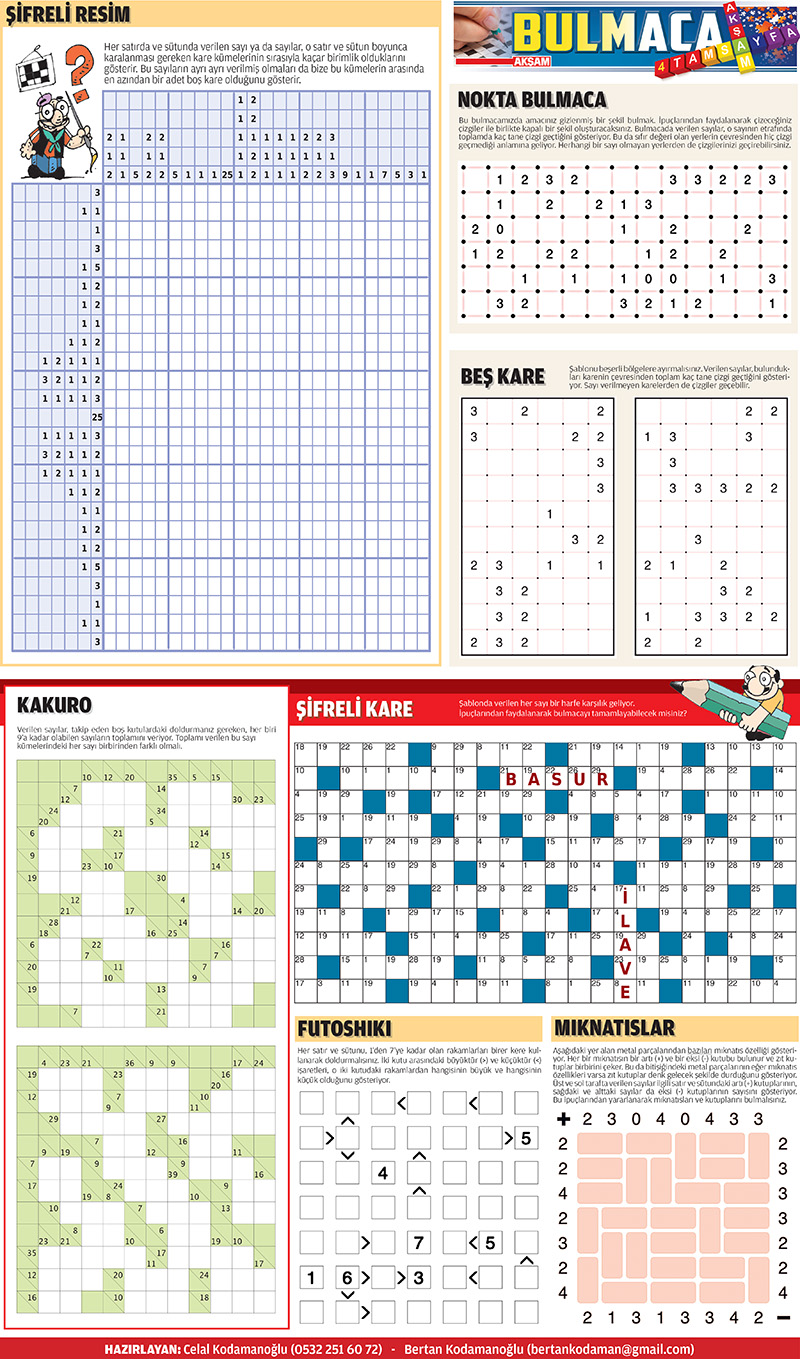 Gazetelerin vazgeçilmez bir parçası olan bulmaca ekleri, okurlar tarafından büyük talep görmekte ve gazetelerin satışlarına etki eden en büyük faktörler arasında yer almaktadır. Günlük olarak yayınlanan bulmaca ekleri dört sayfalık ayrı bir ek olabildiği gibi, gazetelerin içinde tek sayfa olarak da yer alabiliyor.